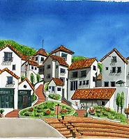 이태원 카페배네, 종이 위에 잉크 수채화, 29x23cm